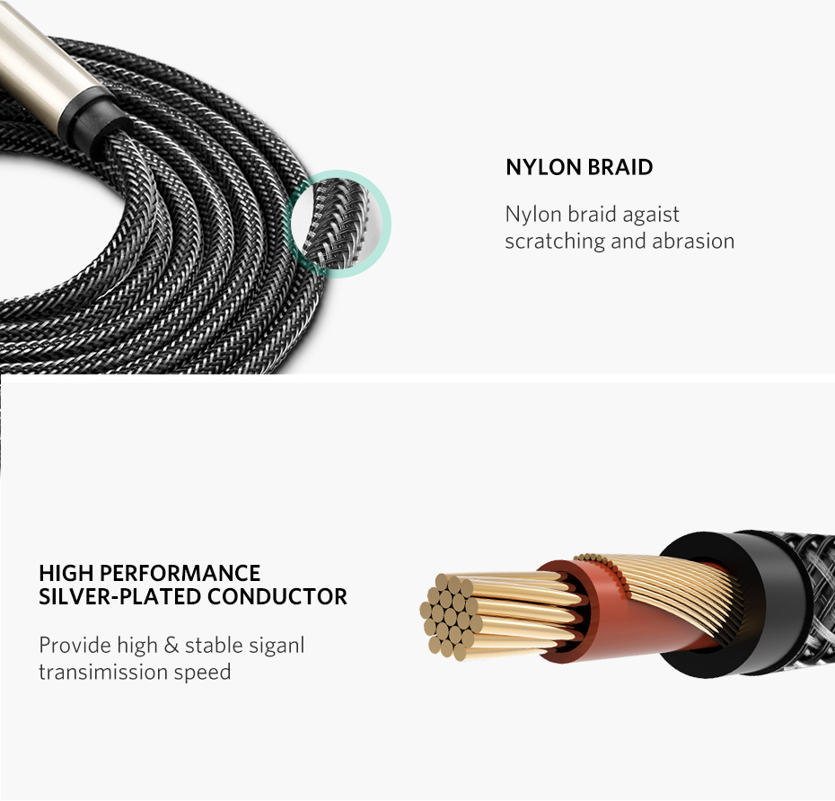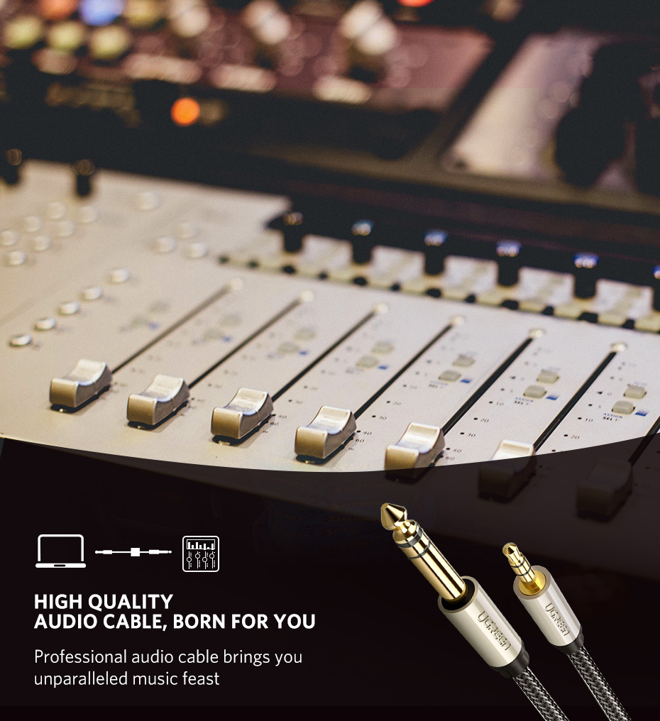 - Cáp âm thanh 3.5mm to 6.5mm dài 2m Ugreen 10628 kết nối các công cụ như: synths, bàn phím, guitar và các thiết bị âm thanh chuyên nghiệp khác, kháng tiếng ồn thấp, tối ưu chất lượng âm thanh truyền qua, hoàn hảo cho các tín hiệu kỹ thuật số, hợp kim kẽm và hai lớp nylon bảo vệ chống oxy hóa khi tiếp xúc với môi trường.