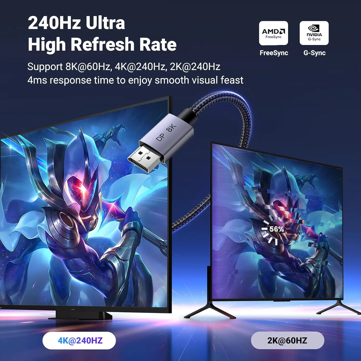 - Khi sử dụng ở độ phân giải cao (4K/240Hz, 8K/60Hz…) — đặc biệt cho game hay video chất lượng cao — cần đảm bảo card đồ họa / GPU đủ mạnh, nếu không có thể vẫn gặp lag hoặc không đạt được refresh rate như mong muốn