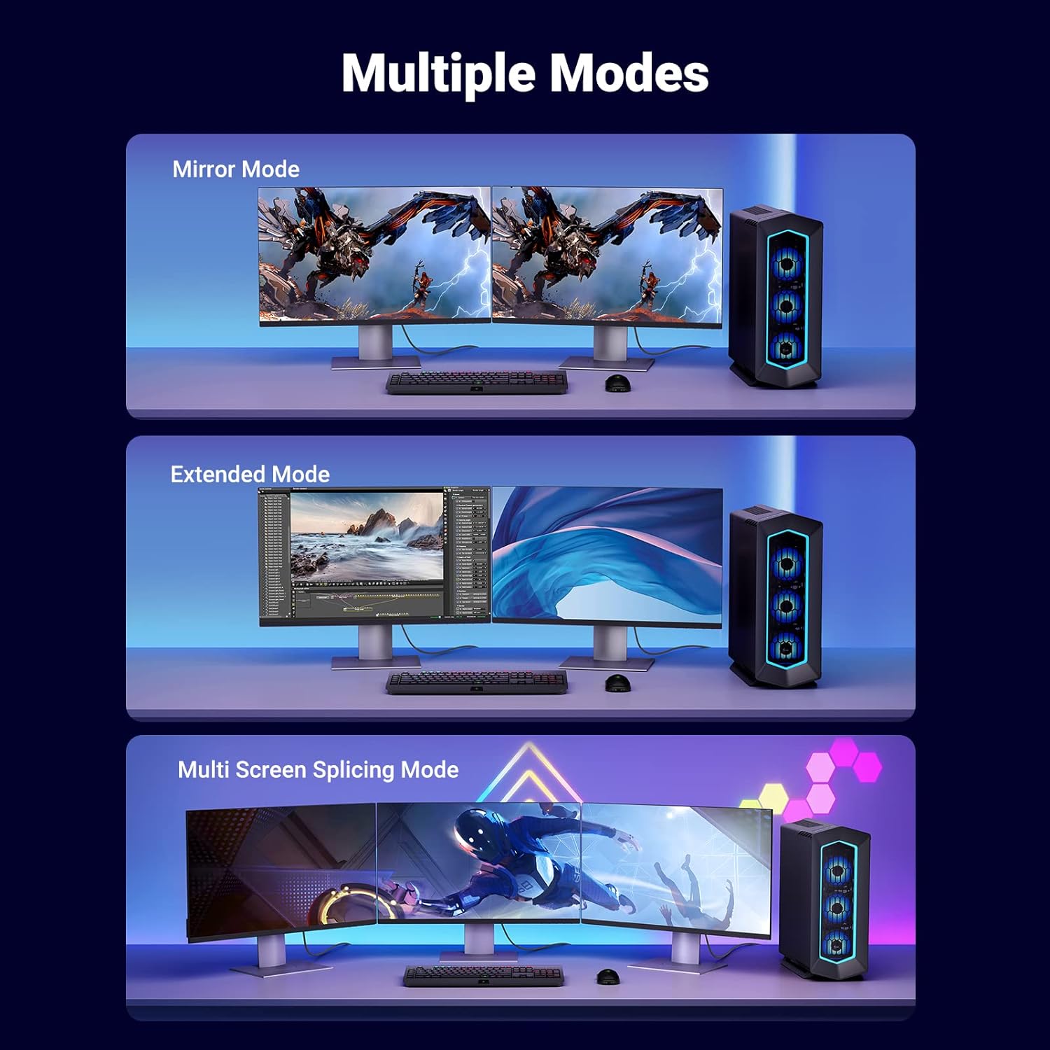 - Độ phân giải Ultra HD 8K @ 60Hz: Cáp UGREEN DisplayPort hỗ trợ độ phân giải lên đến 8k 7680x4320 ở 60Hz, 4K 3840x2160 ở 144Hz và 2K ở 165Hz, lý tưởng cho trò chơi lớn và phát trực tuyến video Ultra HD, mang đến trải nghiệm chơi game mượt mà và đẹp hơn.