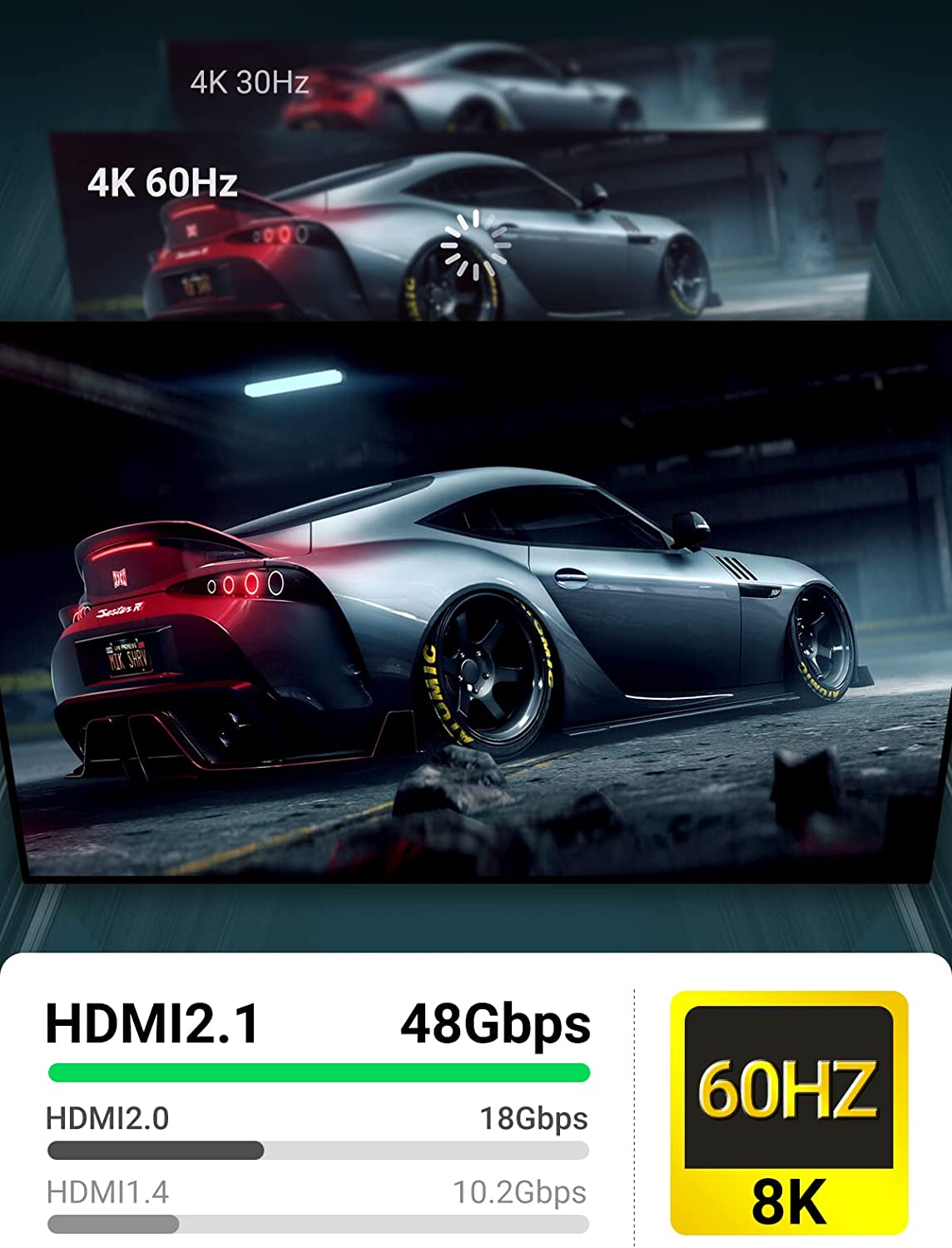 - Chuẩn HDMI 2.1 này truyền tải 8k@60hz