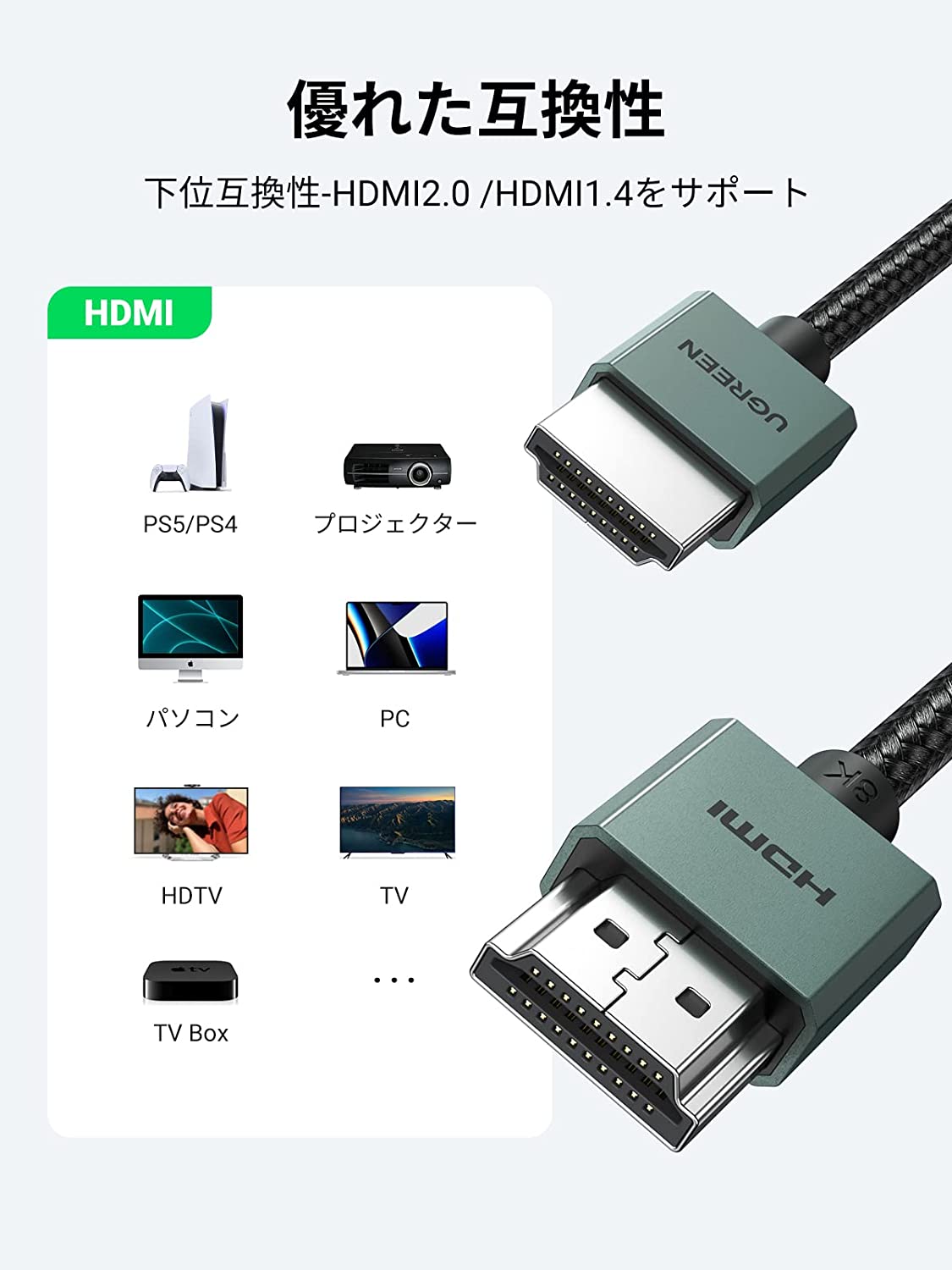 - Tương thích với TV và Trò chơi PS5: Hỗ trợ HDMI 2.1, tương thích ngược với HDMI 2.0b/2.0a/2.0/1.4/1.3/1.2/1.1. Độ phân giải cực cao 8K@60Hz/4K@120Hz và tốc độ làm mới cao cho các thiết bị gia đình của bạn như TV 8K, PS5, Xbox Series X/S và các thiết bị gia đình khác với trải nghiệm hình ảnh mượt mà. (Thiết bị của bạn phải hỗ trợ đầu ra 8K hoặc 4K@120Hz cho 8K hoặc 4K@120Hz. )