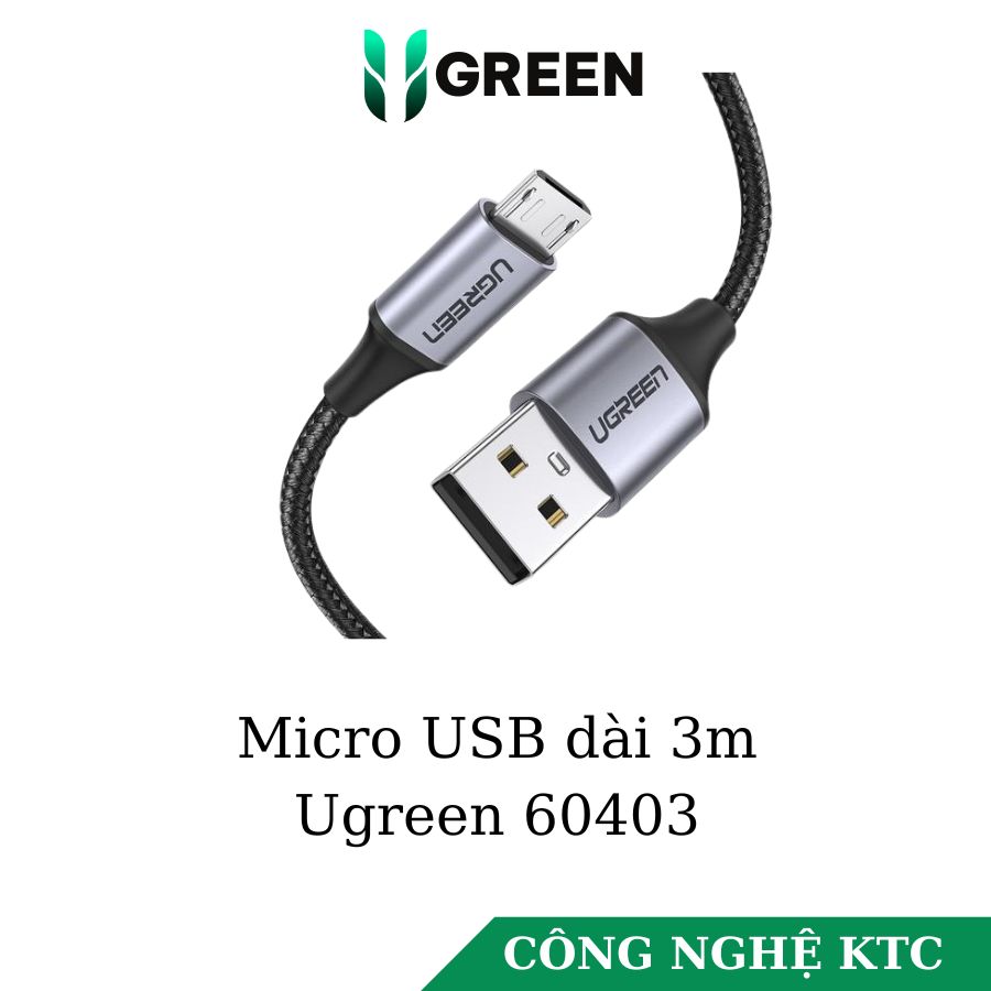 - Cáp USB 2.0 sang micro USB 3M Ugreen 60403, công suất lên tới 18W, tối đa hóa hiệu quả sạc