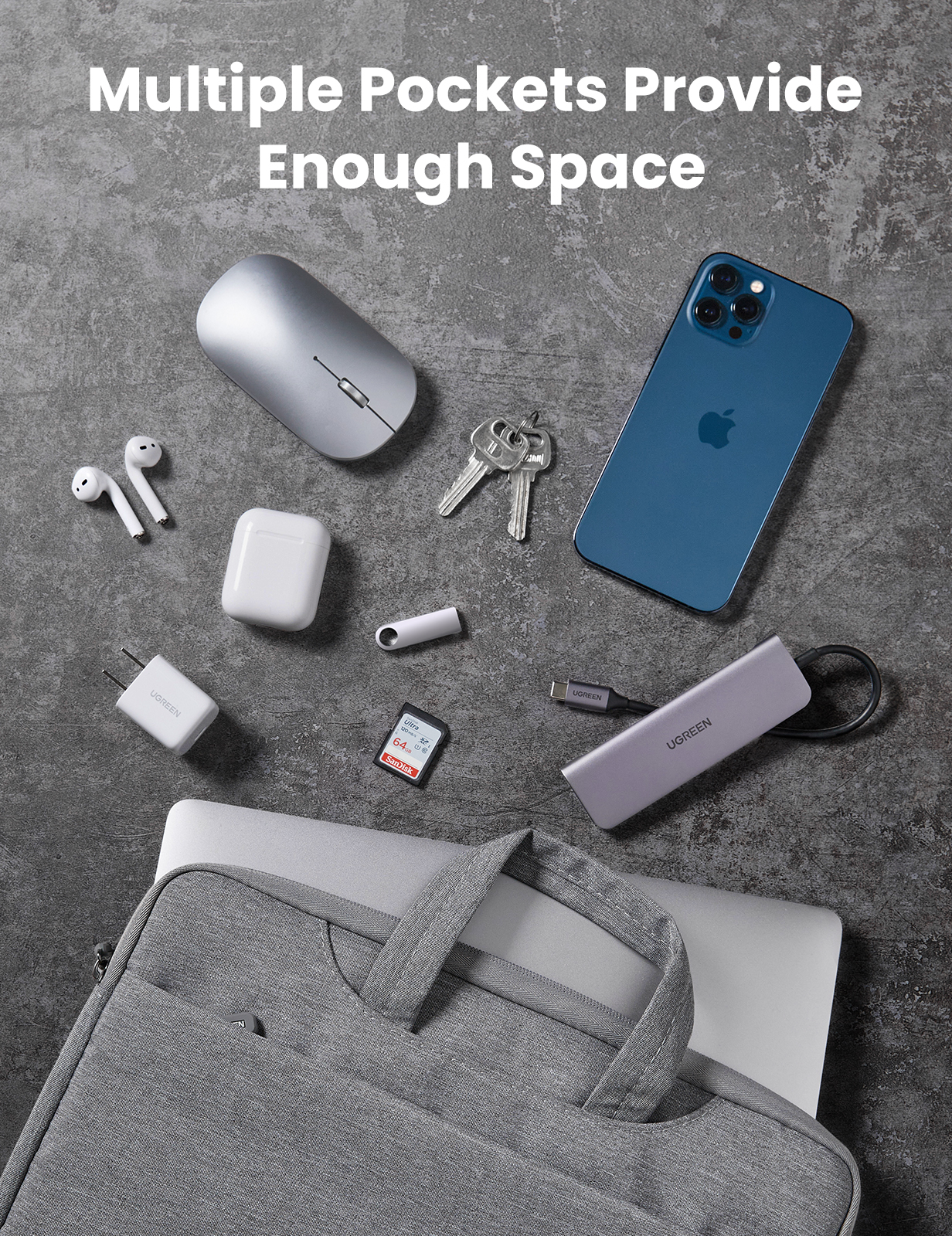 - Túi Ugreen bao gồm ba lớp. Lớp bên ngoài cung cấp mức độ bảo vệ cao chống lại độ ẩm hoặc ngập nước. Trong trường hợp trời mưa, máy tính xách tay của bạn sẽ được an toàn! Vẻ ngoài thẩm mỹ của tiện ích này đáng tin cậy trong một thời agian dài và không dễ bị trầy xước.