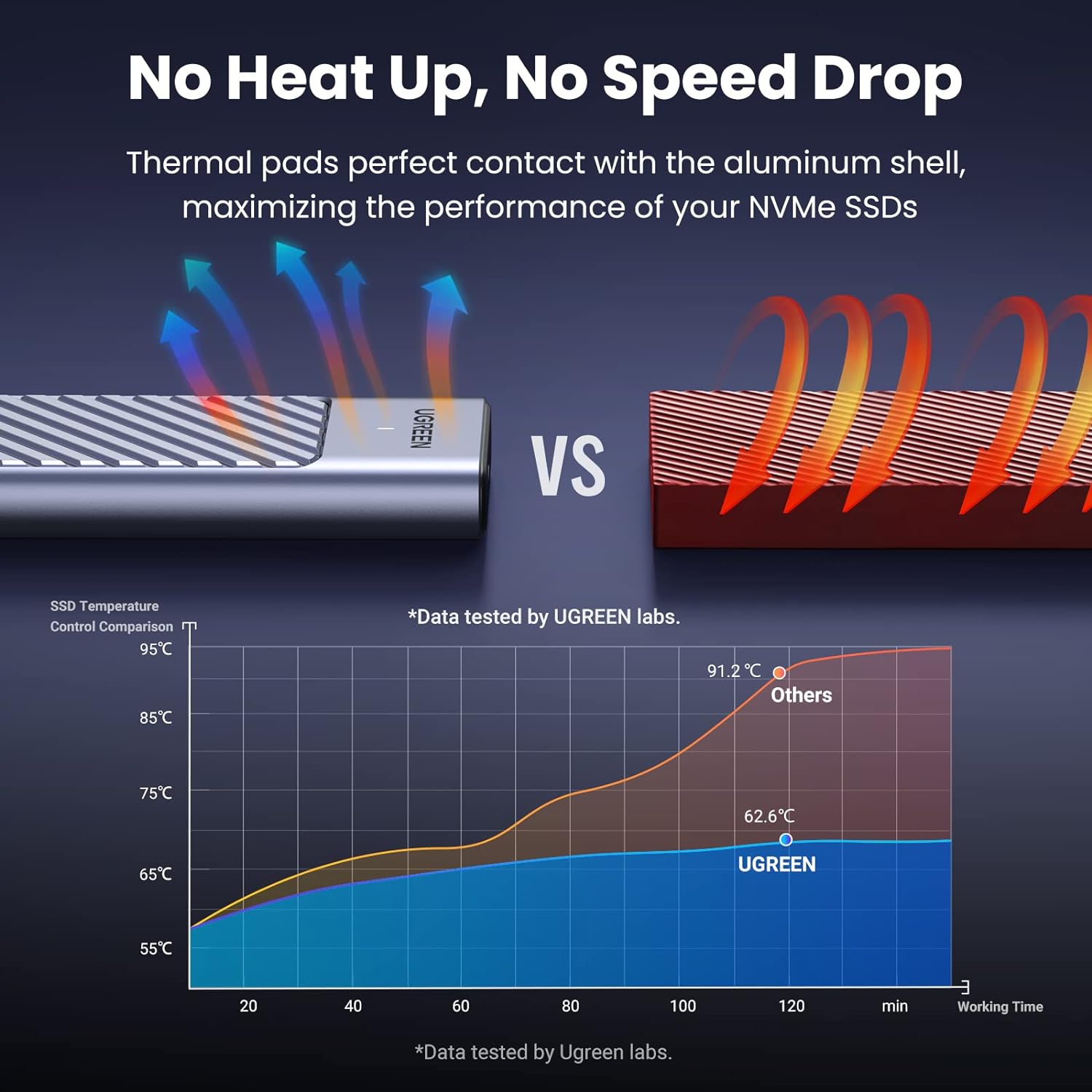 - Tấm tản nhiệt đi kèm vừa vặn hoàn hảo với vỏ nhôm, cho phép bộ chuyển đổi M.2 NVMe này đạt được khả năng tản nhiệt hiệu quả khi đọc và ghi tệp ở tốc độ cao, bảo vệ dữ liệu khỏi các mối nguy hiểm ở nhiệt độ cao.