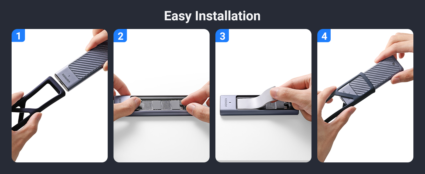 - Vỏ SSD di động này có thể được mang đi bất cứ đâu để hỗ trợ văn phòng tại nhà và đi làm việc hiệu quả. Được thiết kế để chơi game, làm việc, lưu trữ dữ liệu, truyền dữ liệu dung lượng lớn bất cứ lúc nào. (Lưu ý: Không bao gồm SSD M.2).