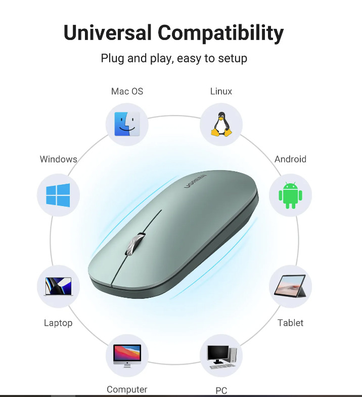 - Chuột không dây 2.4G Ugreen 90673 MU001 đáp ứng nhu cầu đặc biệt của bạn với độ nhạy cao hơn, khôi phục chính xác các chuyển động khi hoạt động tốc độ cao, hoàn hảo