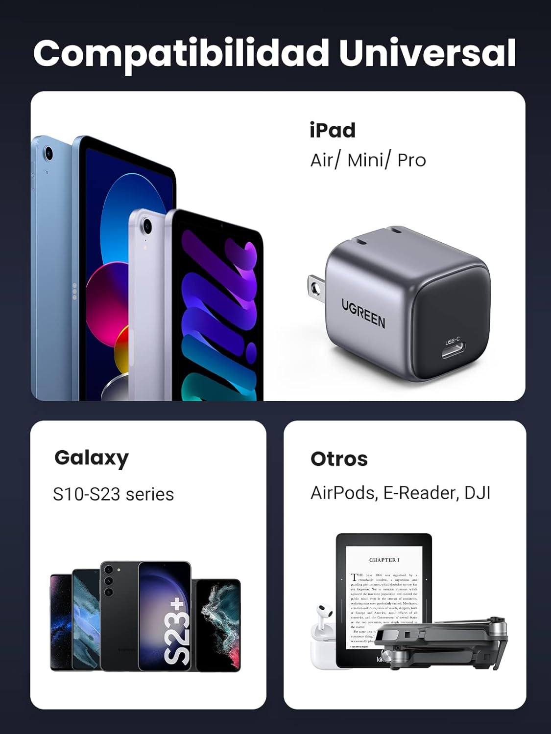 - Củ sạc Nexode 20W USB-C PD GaN Fast Charger Ugreen 90902 : có công suất đầu ra 20W, 30 phút để sạc iPhone 14 Pro của bạn lên 60%. Hỗ trợ sạc nhanh iPhone 8-15 tất cả các dòng, không phải chờ đợi, tạm biệt nỗi lo pin yếu