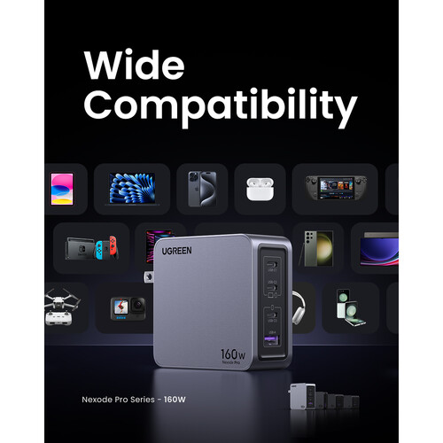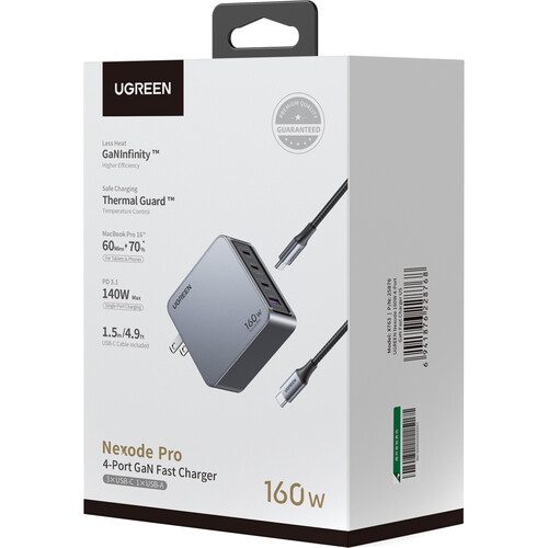 - Củ sạc Nexode GaN Pro 160W 2 cổng USB-C và 1 USB Nexode Ugreen 25876 công nghệ GaN thế hệ mới mang đến cho bạn trải nghiệm sạc nhanh hơn và mạnh mẽ hơn. Hiệu quả tuyệt vời với khả năng sinh nhiệt ít hơn trong một thiết kế nhỏ, nhẹ hơn.