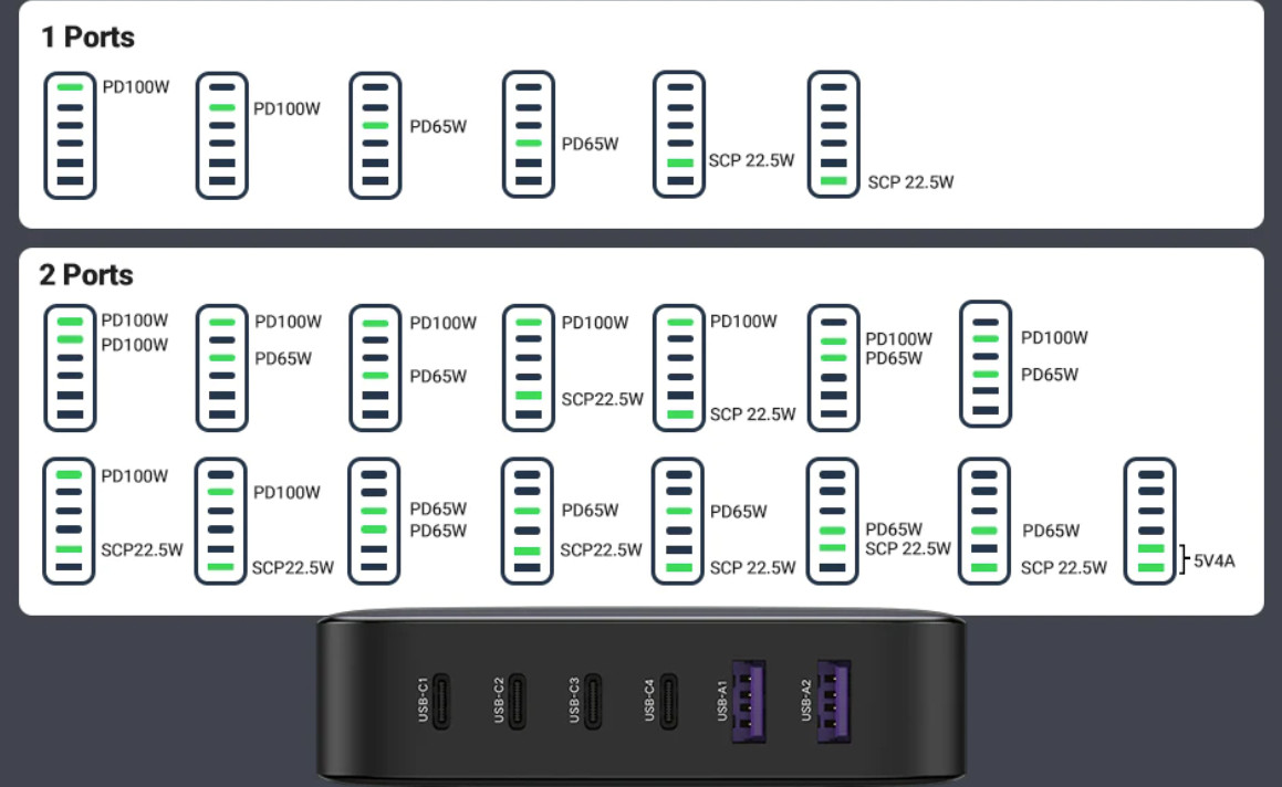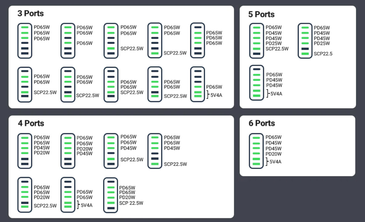 *USB-C3/C4 Output: 5V/3A 9V/3A 12V/3A 15V/3A 20V/3.25A 3.3~21V/3A 65W Max