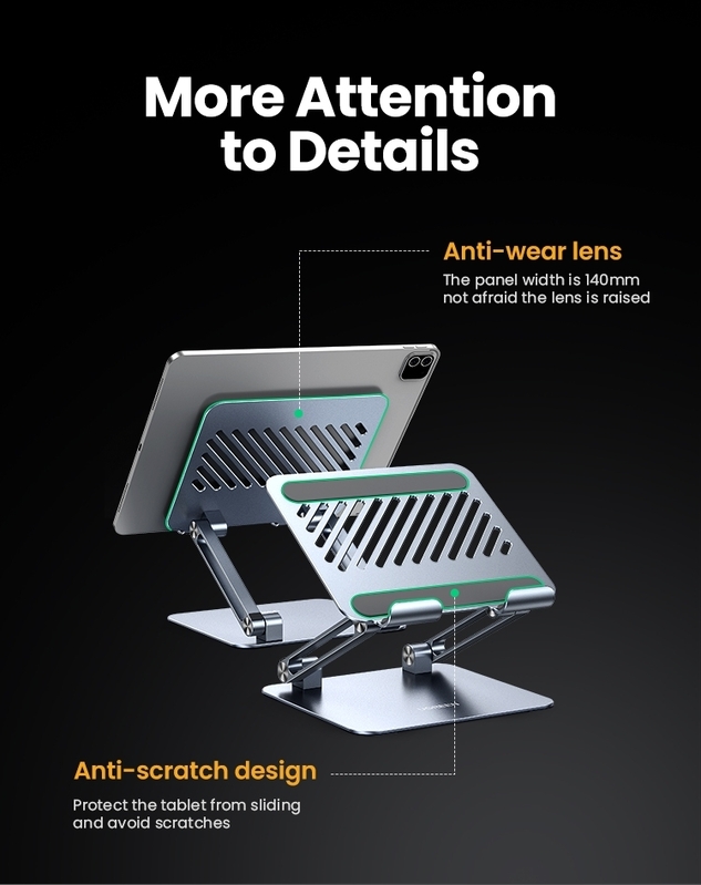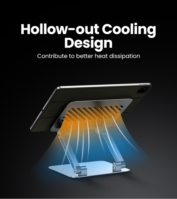 - Ổn định và bảo vệ: Giá đỡ laptop dạng gập được làm bằng hợp kim nhôm cao cấp, các góc cạnh nhẵn mịn, giúp bảo vệ máy của bạn khỏi trầy xước. Cung cấp miếng đệm silicon siêu bền và chắc chắn, đảm bảo kết nối chặt chẽ với mặt bàn giúp cố định laptop tại chỗ mà không lo rung lắc, trơn trượt