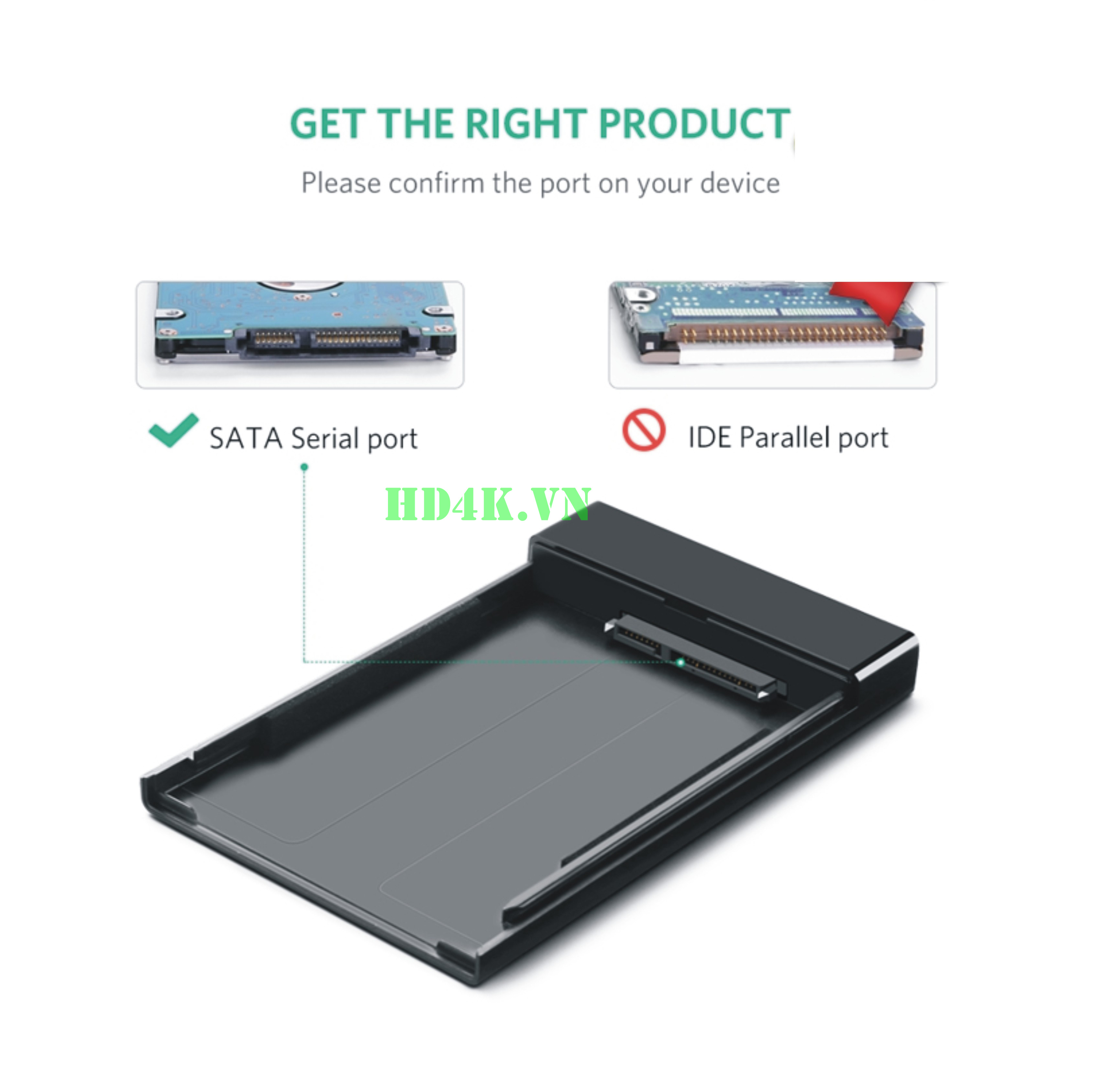- Được thiết kế đặc biệt tương thích cho ổ cứng 2.5 inch và SSD tối đa 6TB trong độ dày 7mm và 9.5mm, bao gồm Western Digital, Seagate, Toshiba, Samsung hdd hoặc SSD với cổng sata.