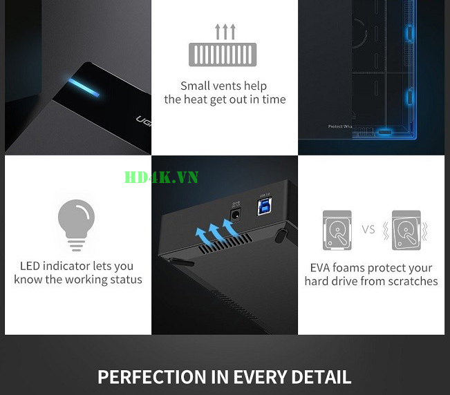 - Hỗ trợ USB 3.0 tốc độ truyền dữ liệu lên đến 5Gbps kết nối hỗ trợ UASP , nhanh hơn USB 2.0 tới 10 lần, và 70% nhanh hơn và tiêu chuẩn sử dụng CPU USB 3.0 ít 80% để kết nối với máy chủ máy tính có sẵn UASP.