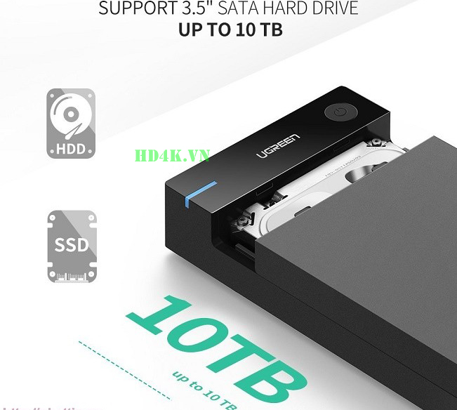 Hộp đựng ổ cứng 3.5 inch Sata/USB 3.0 hỗ trợ 10TB Ugreen 50422