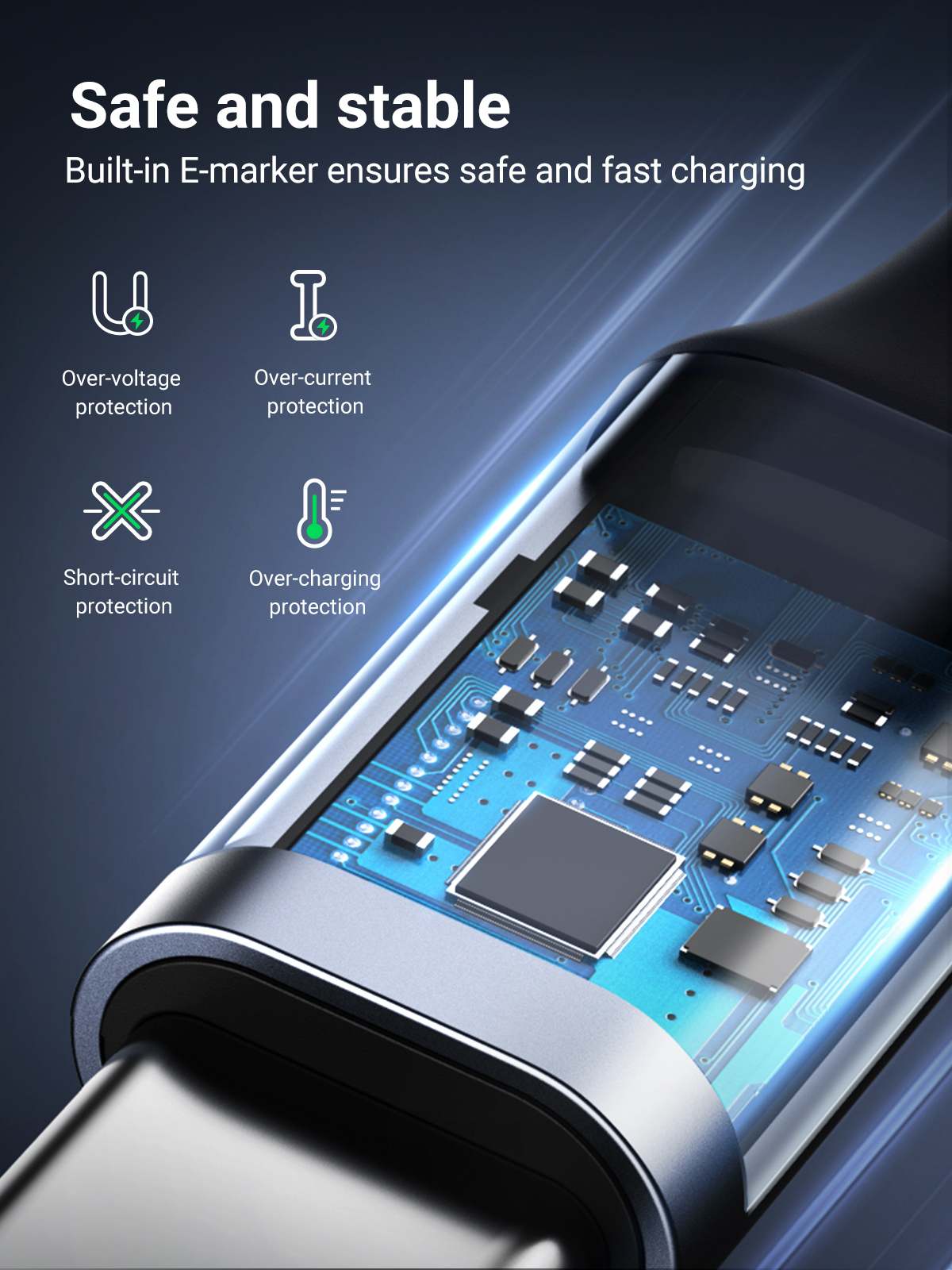 - Công suất nhanh 100W: Cáp sạc nhanh USB C sang USB C sạc nhanh hơn 52% so với cáp USB C 60W, lên đến 20V/5A (tối đa) với bộ sạc cung cấp điện USB-C như 18W/20W/30W/45W/60W/65W/100W. Cáp hỗ trợ công suất lên đến 100W, đủ mạnh để sạc các thiết bị lớn như laptop, MacBook, máy tính bảng và các thiết bị Type-C khác một cách nhanh chóng.