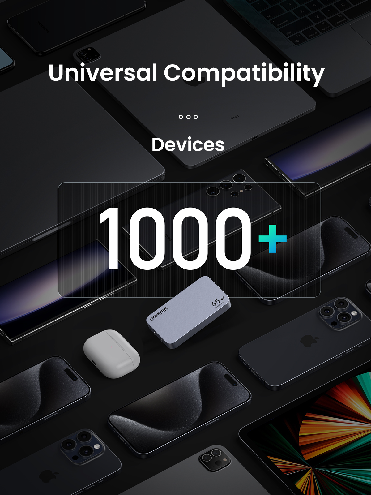 - Bộ sạc 3 trong 1 cho nhiều thiết bị hơn: Bộ sạc USB C 3 cổng 65W của UGREEN cung cấp công suất sạc 65W cực lớn, đủ để sạc nhanh điện thoại, máy tính bảng và máy tính xách tay của bạn từ một bộ sạc duy nhất