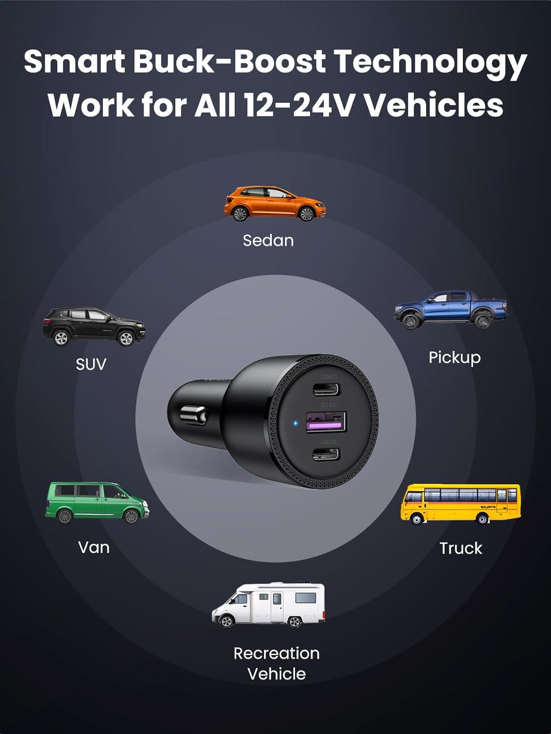 - Sạc 3 thiết bị cùng lúc chỉ bằng một bộ chuyển đổi: Bộ sạc nhanh trên ô tô USB C có 2 cổng USB-C và 1 cổng USB-A. Bộ chuyển đổi sạc nhanh này hỗ trợ sạc cùng lúc 3 thiết bị, do đó bạn không cần phải mở rộng ổ cắm hoặc lắp thêm bộ chuyển đổi, bảo vệ nội thất của bạn và thuận tiện cho bạn bè trong xe của bạn.