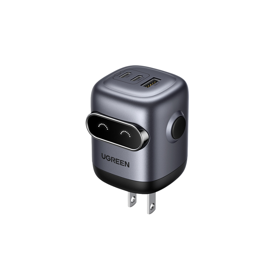 Sạc điện thoại 3 cổng USB-C và USB-A GaN 65W màu đen xám tạo hình robot Ugreen 45001 X662