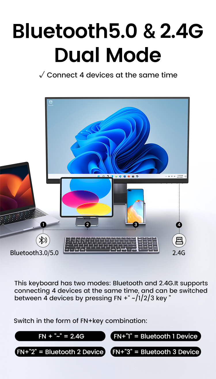 Wireless Ultra Slim Wireless & Bluetooth Keyboard Ugreen 15258