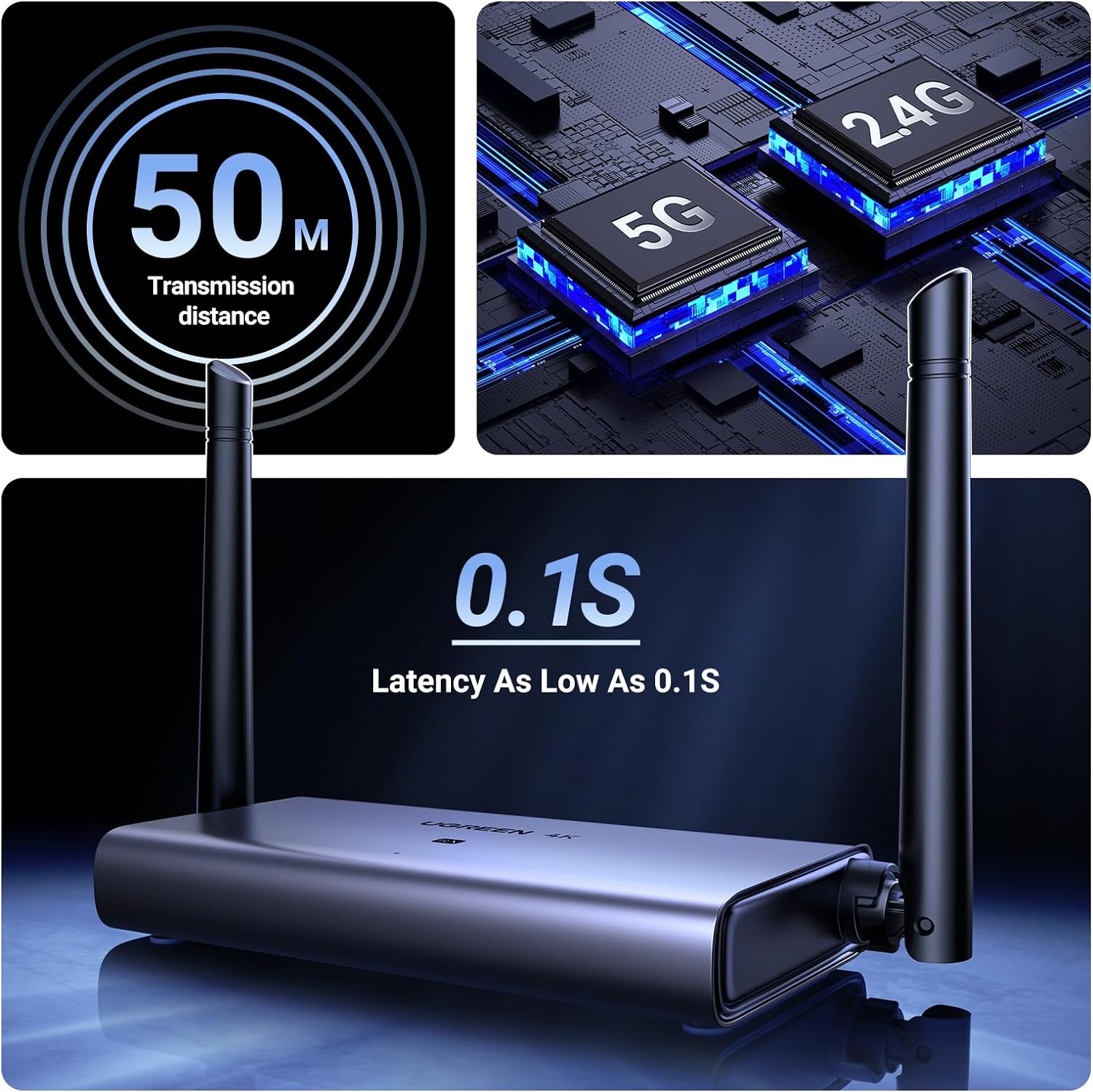 - Truyền không dây đường dài: Nhờ chip 5G mạnh mẽ và thiết kế ăng-ten kép, khoảng cách truyền tối đa của nó có thể đạt tới 50M. Ngay cả khi môi trường tín hiệu tương đối phức tạp, vẫn có thể đạt được đường truyền ổn định.