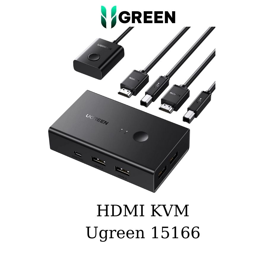 - Bộ gộp HDMI 2 ra 1 có KVM hỗ trợ 4k@60Hz Ugreen 15166: Công tắc KVM này cho phép 2 máy tính chia sẻ 4 thiết bị ngoại vi USB 2.0 như bộ bàn phím, chuột và máy in, đồng thời tập trung quyền điều khiển 2 máy tính của bạn trên một màn hình, giúp tối đa hóa năng suất và chế độ xem khả năng và cải thiện nhận thức tình huống bằng cách cho phép thu thập dữ liệu nhanh từ nhiều máy tính cùng một lúc.