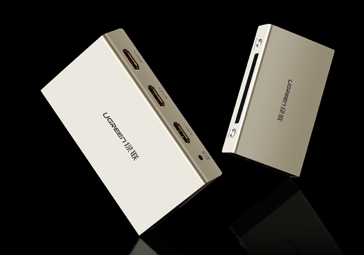 - Bộ gộp 3x1 Ugreen 40369 được thiết kế nhỏ gọn, vỏ hợp kim cao cấp. Bề mặt Chrome cao cấp chống sầy xước, đầu HDMI mạ vàng.