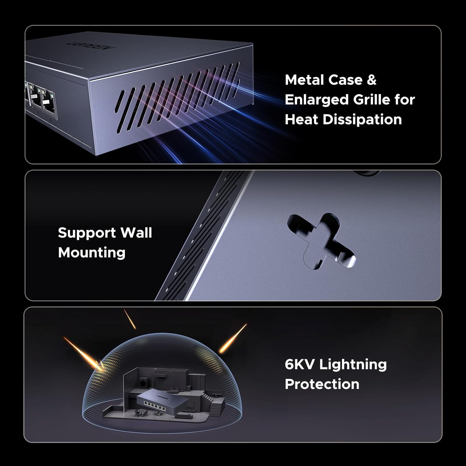 - Được thiết kế chính xác, hiệu suất đáng tin cậy: Được trang bị khả năng chống sét 6KV cho hoạt động đáng tin cậy trong thời tiết khắc nghiệt. Vỏ kim loại chắc chắn đảm bảo tản nhiệt và thiết kế linh hoạt hỗ trợ lắp đặt trên bàn hoặc tường để lắp đặt linh hoạt.