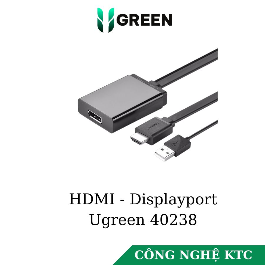 - Cáp chuyển HDMI to Displayport ugreen 40238, Cáp chuyển đổi tín hiệu HDMI sang Displayport có cáp USB 2.0 đi kèm hỗ trợ nguồn điện 5V cho cáp HDMI to Displayport giúp truyền tín hiệu tốt hơn
