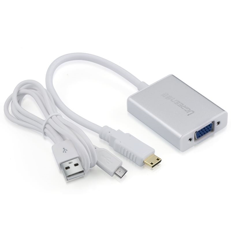 - Cáp chuyển Mini HDMI To VGA Ugreen 40217 tích hợp chuẩn Audio chân 3.5" xuất âm thanh cùng hình ảnh đồng thời cho cáp Mini HDMI to VGA