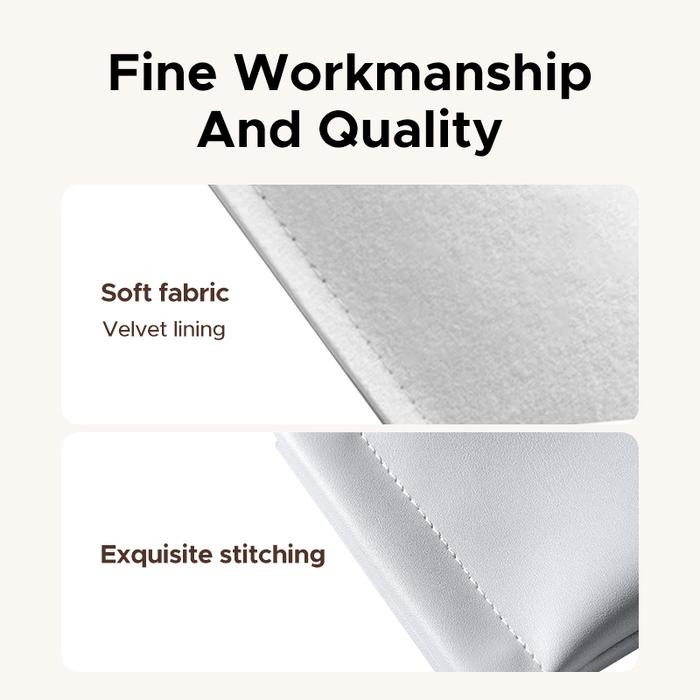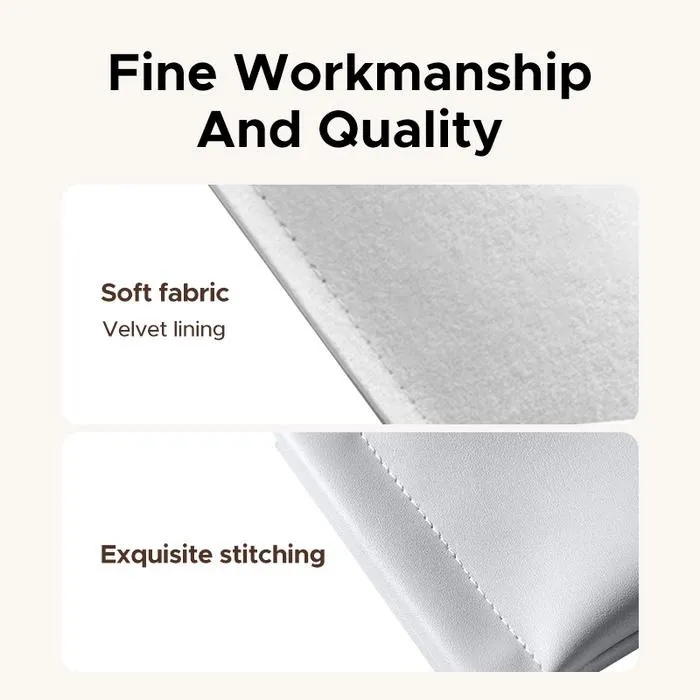 - Lớp lót bên trong: Vải nhung mềm mại (soft velvet lining) — bảo vệ thiết bị khỏi trầy xước và va đập nhẹ