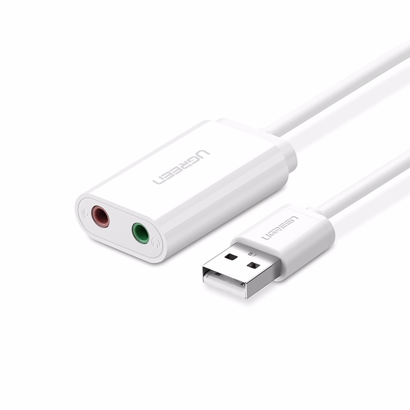 - Cáp chuyển USB 2.0 to 3.5mm Ugreen 30143 được sử dụng để chuyển đổi tín hiệu sound từ cổng USB ra chân audio 3.5mm, USB sound Ugreen này được sử dụng để thêm cổng sound âm thanh cho máy tính thông qua cổng cắm usb, hỗ trợ hai jack 3.5mm âm, một đầu là cổng loa tai nghe cổng còn lại là cổng cắm mic