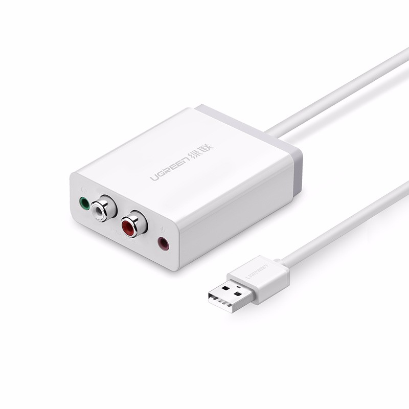 - Cáp chuyển USB to AV - RCA Ugreen 30521 được trang bị với một 3.5mm jack microphone jack 3.5mm + tai nghe + thiết bị đầu cuối 2RCA các tín hiệu kỹ thuật số từ máy tính thông qua một bộ chuyển đổi chuyển đổi tương đương, và chuyển đổi thành một tín hiệu tương tự, 3.5mm đó là trao đổi bằng giọng nói sử dụng được đầu ra cho các thiết bị âm thanh sử dụng một micro và tai nghe jack hoặc jack cắm RCA.