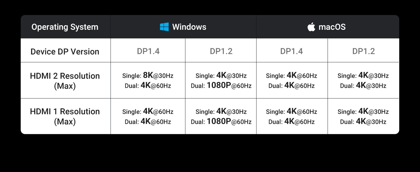 - Kết nối hai màn hình ở độ phân giải 4K@60Hz hoặc một màn hình ở độ phân giải lên đến 8K@30Hz.