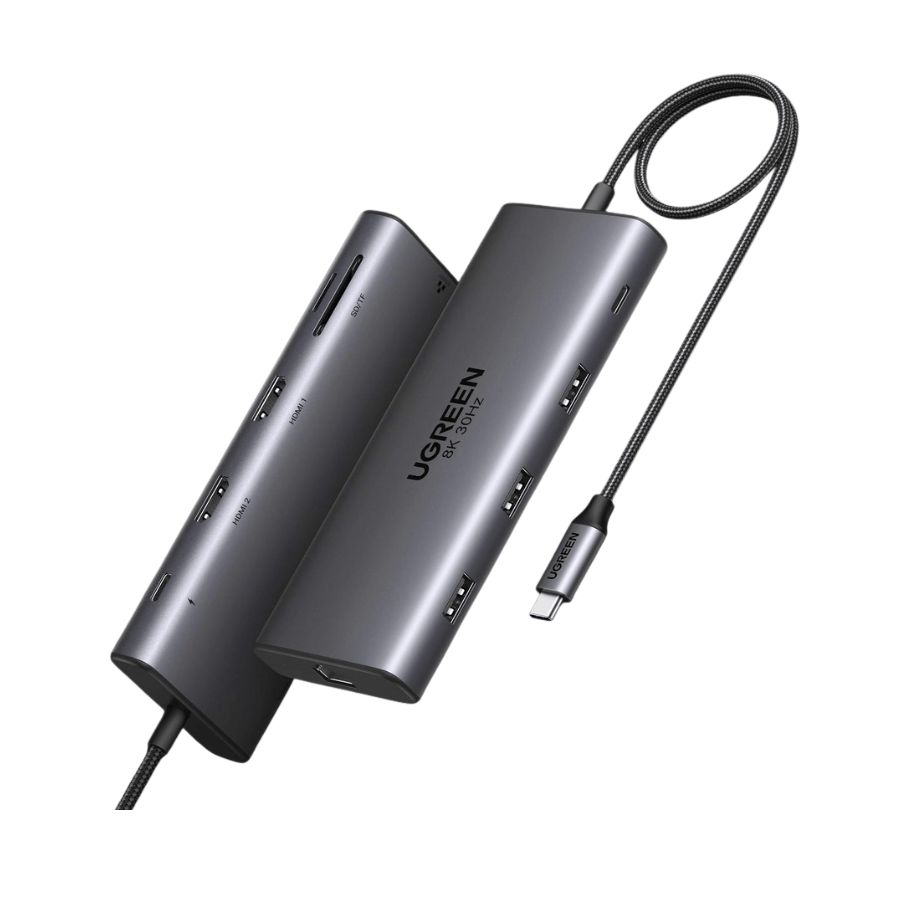 Bộ chuyển đổi USB-C sang 2*USB C+2*USB 2.0+USB 3.0+2*HDMI + SD/TF + LAN hỗ trợ 8K Ugreen 15534 CM639