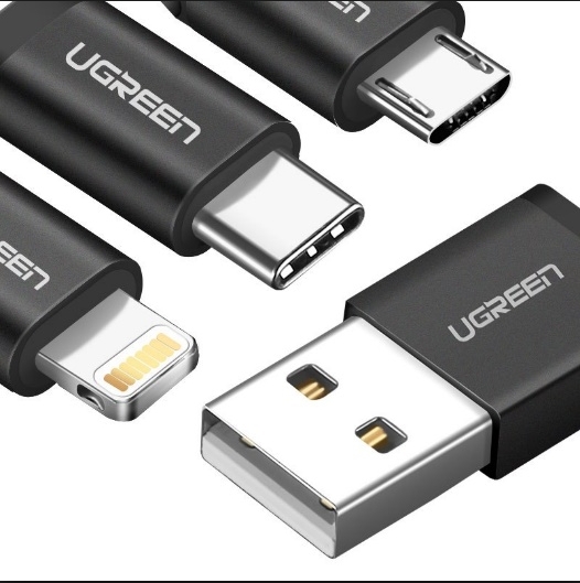 - Cáp sạc điện thoại đa năng 3 trong 1 Ugreen 50206 hỗ trợ chuẩn cáp Type C và Micro USB và lightning, sử dụng sạc cho hầu kết các điện thoại, máy tính bảng trên thị trường hiện nay.