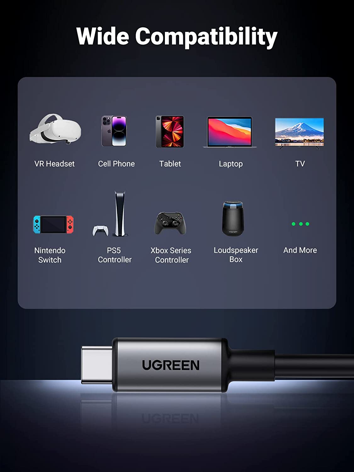 - Cáp Type C sạc và truyền dữ liệu dài 5M Ugreen 90629: Thiết kế cho Phụ kiện Oculus Quest 2/1: tương thích hoàn hảo với Oculus/Meta Quest 2/1, kết nối tai nghe VR với PC chơi game của bạn, cho phép bạn truy cập vào nhiều lựa chọn trò chơi Oculus Rift và ngày càng tăng Trò chơi Steam VR, mang đến cho bạn trải nghiệm chơi trò chơi VR thú vị.