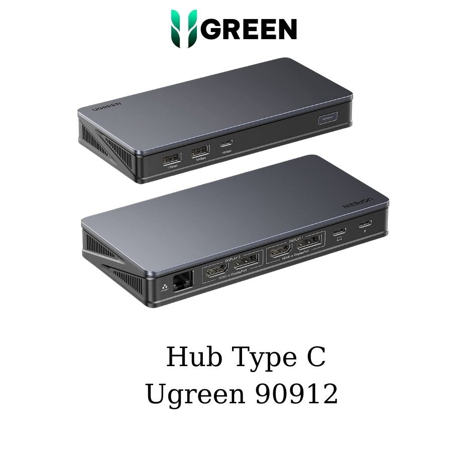 - Bộ chuyển đổi USB-C sang 2*USB 3.1 + 1*USB-C + 2*HDMI + 2*DP1 + RJ45 Gigabit + PD Ugreen (90912): Với công nghệ DisplayLink, có thể mở rộng 2 màn hình lên đến 4K@60Hz cho các hệ thống Windows và macOS. Tất cả các màn hình có thể tự do lựa chọn hiển thị với chế độ mở rộng hoặc chế độ phản chiếu.