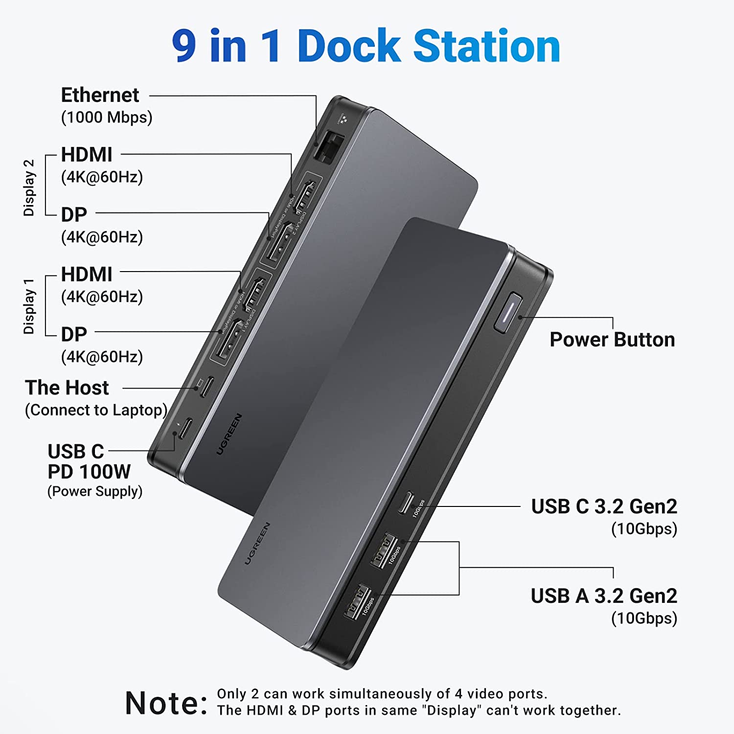 - Output: 2*USB 3.1 A Female, 1*USB-C 3.1,2*HDMI, 2*DP,1*RJ45 Gigabit,PD