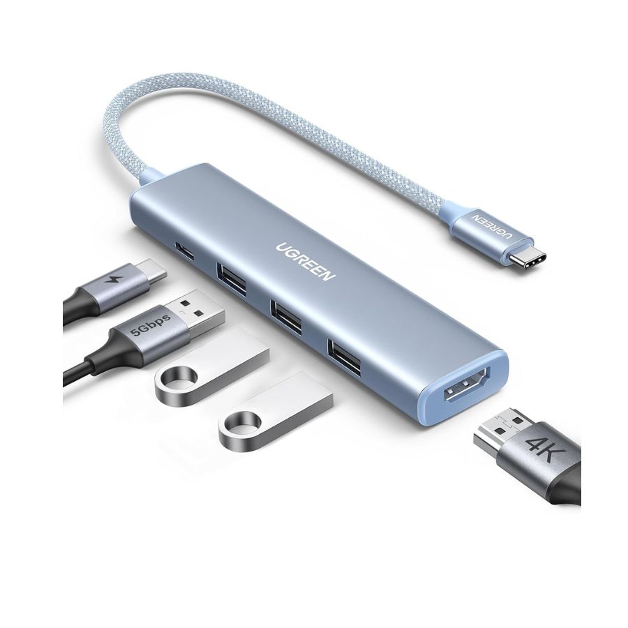 - Bộ chuyển đổi USB-C sang 3*USB 3.0+HDMI+USB-C hỗ trợ 4K Ugreen 35581, tương thích với Thunderbolt 3, mở rộng thêm 5 cổng thông qua cổng USB C, bao gồm Đầu ra HDMI 4K, cổng sạc USB Type C PD 100W và thêm 3 cổng USB 3.0 tiêu chuẩn, lý tưởng để mở rộng cổng cho Macbook Air / Pro, XPS 13/15 và máy tính xách tay Lenovo, Asus, HP, Acer, Razer có cổng USB-C - với điều kiện type c có hỗ trợ xuất hình ảnh